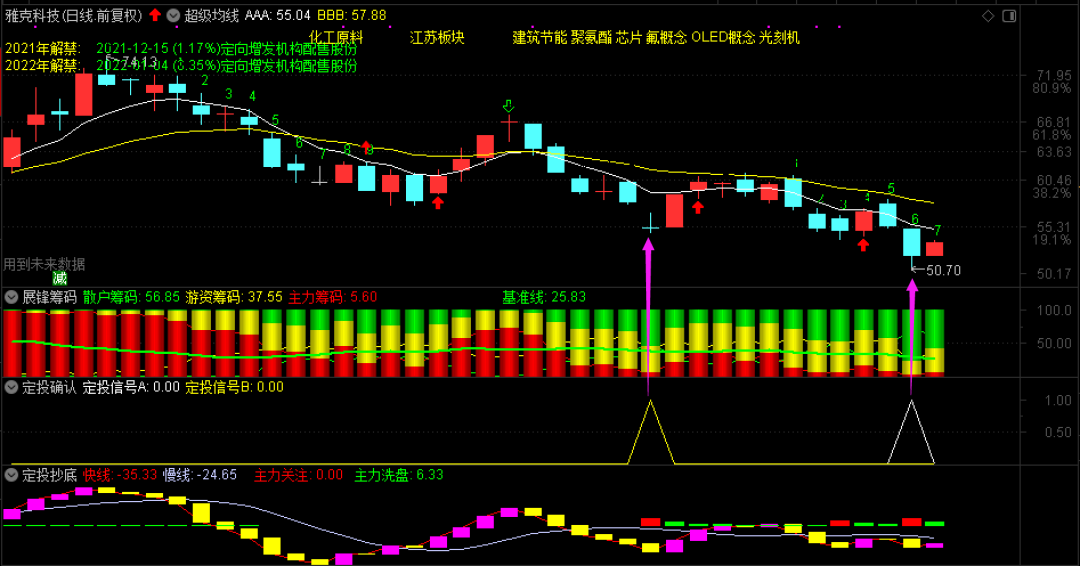 昨天定投抄底有5只个股选出,大族激光、雅克科技、深南电路、振德医疗和三一重工。谁能想到雅克科技是最先止盈的个股?但确确实实有人买了,而且今天盘中顺利止盈,买入价格是52.04元,乘以1.03=53.60元。今天开盘前只要挂53.60元,股价最高53.77元,你都可以顺利的收获止盈。就是这么奇妙,其他的股票后面还有机会吗?今晚讲课,我给你说说!