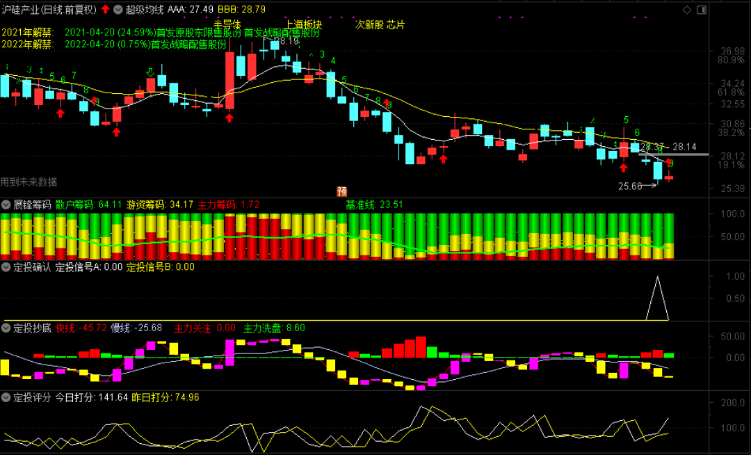 昨天定投抄底选出的股票是沪硅产业,我们是收盘价26.12元买入的,按照设计规则,26.12×1.03=26.90元,这就是次日挂单止盈价格。该股今天最高冲到26.94元,你说是不是顺利获利了结了?这就是最新版定投抄底的魅力,分批买入不慌张,只要按照规矩来,97%的止盈率还是蛮高的!