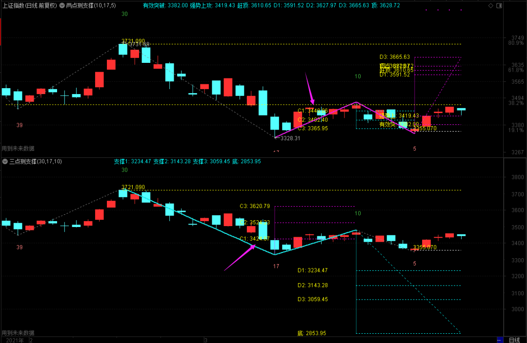 昨天讲过大盘60分钟逃顶信号的问题,今天市场的走势大家也看到了,还好收盘重新站回C1的3440.06,勉强是勉强了点儿,但也算给多方一个喘息的机会。接下来,除了3419.43支撑之外,我们更应该关注的是3478.14什么时候突破?因为只有这里突破了,反弹才可能走得更加长远。此外,3410.84是下一交易日多空转换点,得失非常非常重要。