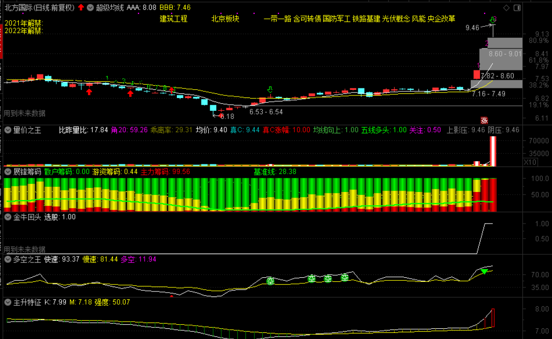 有股友今天问我:以7.50元抛出的北方国际又涨停了,有何感想?其实,我就知道会有人这样问,当初北方国际是按照定投抄底原则买入的,这个大家都是知道的,按照定投抄底当初原则+4%获利止盈价7.37元,7.50元的出局价已经多赚了近+2%,我觉得我挺满足的。这不是安慰自己,因为你按照什么原则操作,就按照什么原则止盈,这就是纪律问题!