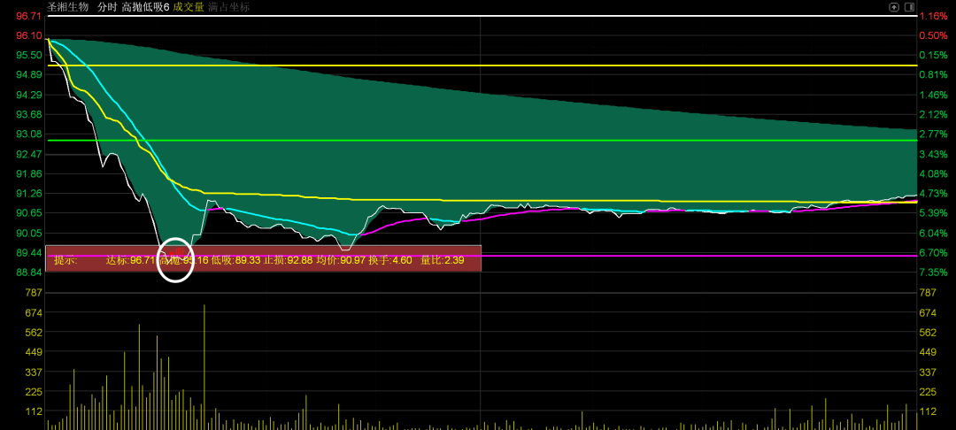 今天前市10:02分定投抄底预警了圣湘生物,我是在89.38元实验性买入的,结果该股震荡回升后横盘,午后把信号给磨掉了。所以原则上讲,今天是没有定投抄底预警股的,而我的买入只是实验性操作,并不具有普遍意义。因为我还在不断总结深化定投抄底模式,就目前的情况来说,这是散户最能够赚到钱的一种方法,不信你也试试!