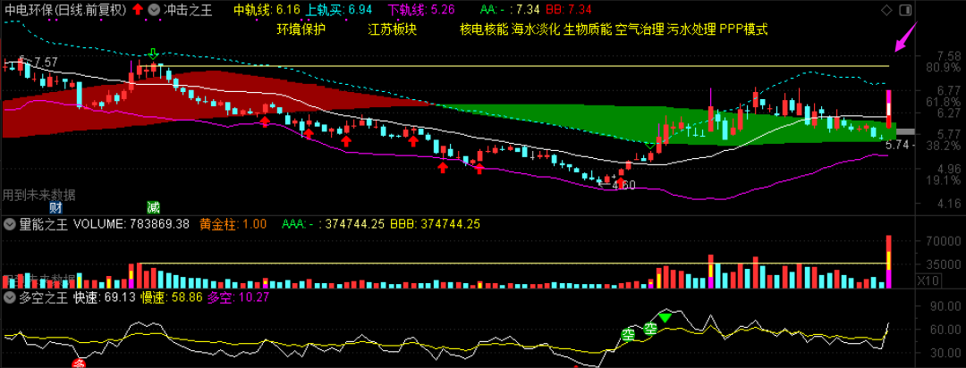 中电环保今天的涨停让我多少感觉到有点意外,这只个股持仓已经有一段时间了,盘中涨停板曾一度被打开过,也许是主力的计划,也许是市场环境所致,但不管怎么样,最后还是封死了涨停板。明天该股的价位平台在7.34元,如果干得上去主力再猛一点儿的话,再整个涨停板也是有可能的。但同时也要小心,短期涨幅过大之后可能出现的回调。