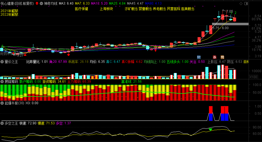 上一交易日介入的涨停预期股悦心健康,没有实现盘中快速的拉升。分享介入价位6.25元,看今天大盘向下回落表现不好,就6.40元高抛出去了,在午盘中最高冲到6.66元,有股友觉得比较可惜。在这我要多说一句,有些时候资金安全更重要,如果你有能力自己把握的话,不必跟我一样在6.40元出局,我只是做了自己想法中该做的事情,不具备任何指导意义。