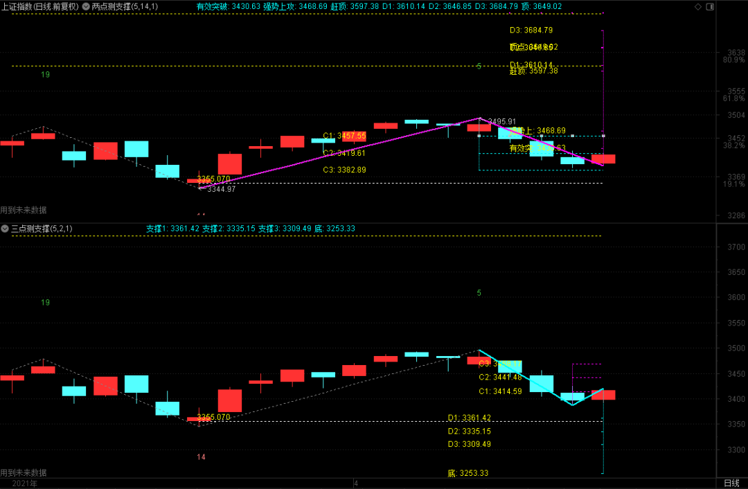 从大盘日线结构图来看,今天指数反弹勉强收在第一压力位3414.59之上,下一个压力位在3441.48,如果3419.61第2支撑被收复的话,未来的3478或3495都不在话下。就现在的TD序列来说,日线级别虽然没有改善,小时级别却告诉我们:正常情况下,还有7个小时的反弹可以期待!至于有没有外部因素出来干扰,那就只能边走边看了!