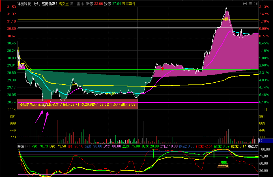 昨天有事情要处理,错过了祥鑫科技的尾盘买入。今天见该股前市下落速度较快,于是在28.66元做了1万股的低吸,听我盘中直播的都知道我这么做的,旗舰版里有一个兄弟就少挂了几分钱。结果没有成交,股价最终收盘在30.76元,我的获利幅度超过+7.32%。说实话,我只为+3%而来,超预期的部分,就当是上天的恩赐吧!