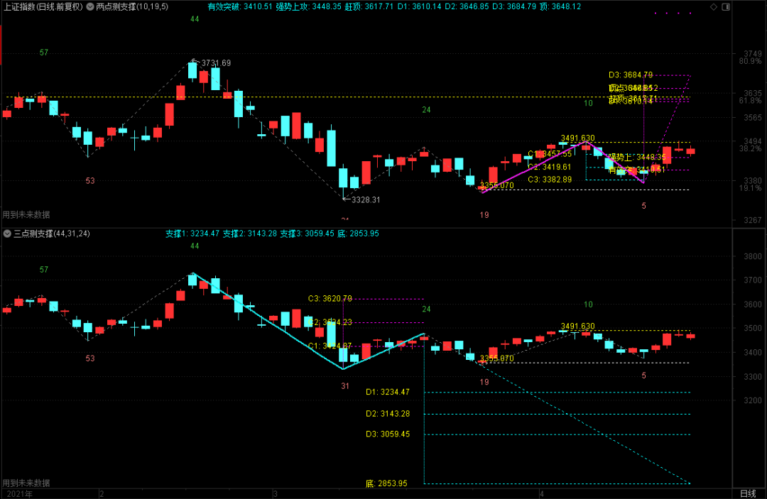昨天讲了小时级别的4个点位:3481.63、3487.60、3487.06、3472.94,结果你对照一下,今天小时级别的4根K线,都没有收在点位之上,所以60分钟也没有出现上升计数。明天小时级别的4个点位分别是:3462.52、3478.06、3475.30、3472.93,不出意外的话,第1个小时3462.52被突破的概率大,但能否出现连续的上升,依旧有待商榷!