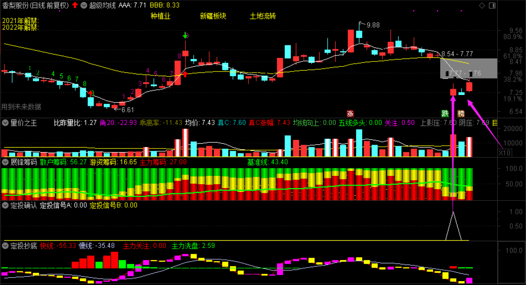 昨天定投抄底7.21元买入的香梨股份,最高涨幅超过+7.62%,按+3%止盈原则计算的话,是完全可以顺利出局的。神马股份今天也顺利止盈,截止今日收盘,在预警信号确立的定投抄底股中,完全按要求获利止盈的个股已达到37只,仅有今天发出买入信号和前面的两只个股未能止盈,随着时间的推移,会不会很快就止盈?不妨一起拭目以待!