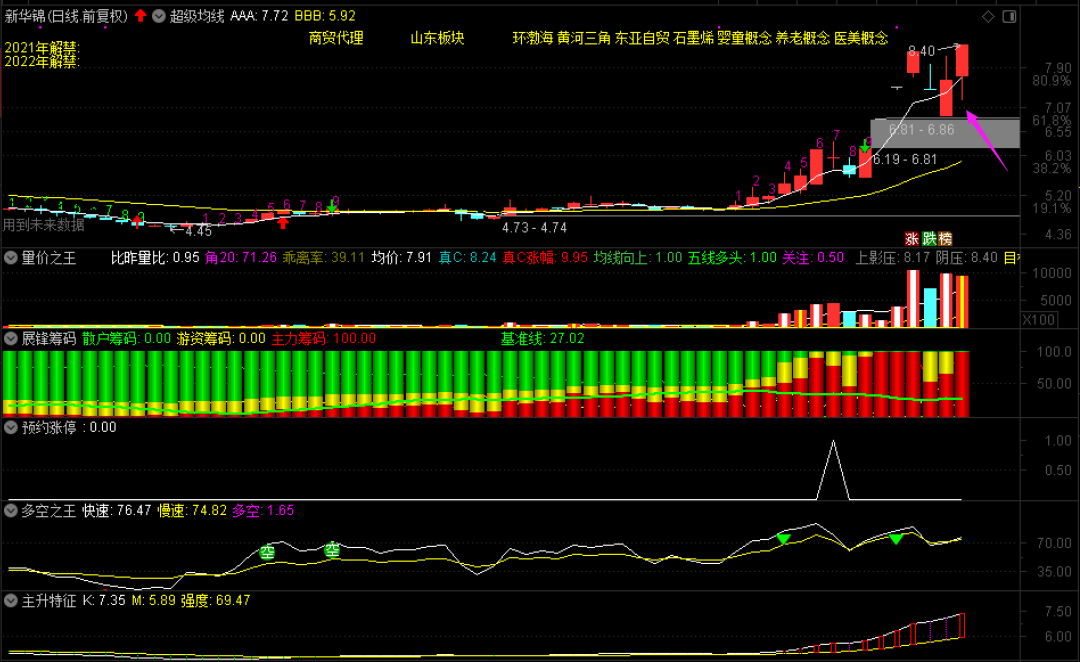 继雪人股份之后,今天我们又买入了一只预约涨停股:新华锦!该股是4月12日的信号,上一次连续涨停完美错过。今天在7.55和7.21元各买了同等仓位,收盘获利超过13个点。明天如果冲涨停的话,我也不贪,直接送给主力,看现在的气势是有这样机会的,因为今天的量能在这里摆着。你对该股怎么看?欢迎留言一起探讨~~