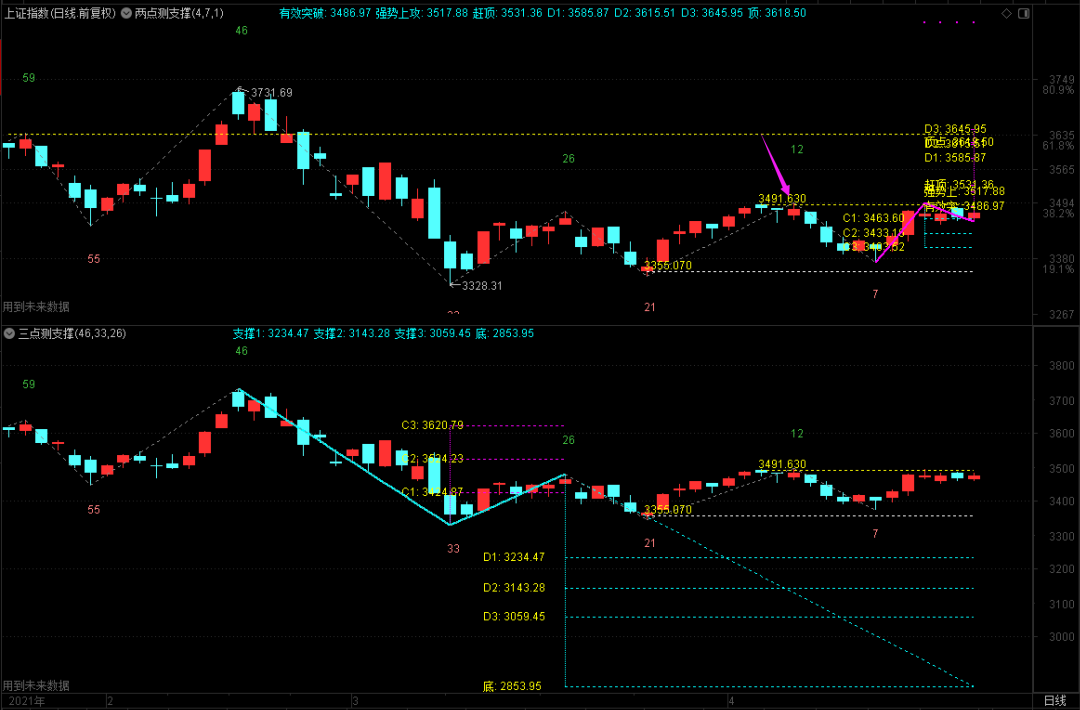 4月8日大盘见高3495.91之后,到今天已经过去11个交易日,这个关键的点除了4月20日象征性的向上碰了一下之外,就没有任何动静了。不过今天收盘还不错,在3463.60之上收盘,60分钟也出现了小周期上涨1的计数,这是摆好了架势,会不会再度功亏一篑,我不知道!但3495.91不突破的话,这大盘短期就好不起来,这个认识是要有的!