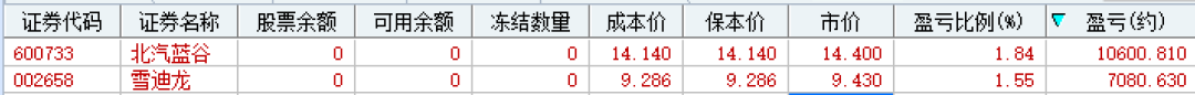 今天自己的小账户上,早盘只赢了600733北汽蓝谷,也是盘中直播,展示一下雪迪龙挂涨停板,结果被主力一口吃掉了。好在还有7000多块钱的收益,不然真的是没法交代。不过,这只个股是前期的预约涨停股,现在再涨起来也没毛病,我自己少赚点儿没关系,只要其他人不再拖泥带水,我就心满意足了。