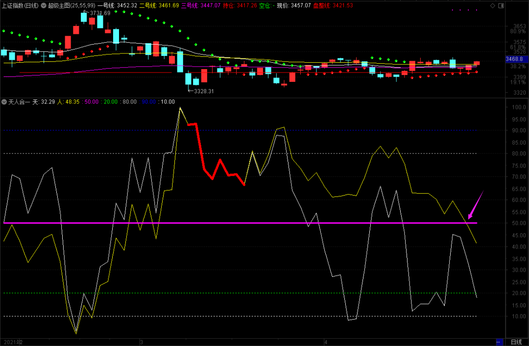 昨天指数收盘,天人合一指标人线下破50数值,我居然没有看到。只告诉3417.26不能破0.01点,而且我也说了指数收盘站上3474.17,日线级别就会变成上升序列1,今天这两个预期都达到了。虽然最后收上的很微弱,但怎么也能代表着一种态度,明天是节前最后一个交易日,就看3497.12能不能突破,突破的话会去3524附近,但无法站稳就先做个高抛!