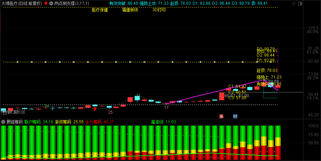 上周五在64.46元,我还买了大博医疗。其实和上面那只股一样,我同时贴在旗舰版的群里,很多朋友认为大博医疗应该好过乐惠国际,结果今天乐惠国际却先拔头筹。有些时候,个股在做2选1的时候,大多数朋友都会选到那只不太涨的,其实我也一样,所以这两只股我都会买一些,然后看自己的问题究竟出在什么地方,对以后的操作有非常好的影响!有人挺纳闷,我天天都说自己赚钱的股票,小亏或大亏的股票从来都不讲,其实我很怕有人跟风,股票赚钱了,你好我好大家好;如果跟风亏了,那挨骂的就只剩下我一个了。我才不干这样的傻事儿,可以直播的时候点评大盘,可以通过回复来讲解个股,但都仅仅是个人的意见而已,所以我希望我们应该有一个默契的约定!