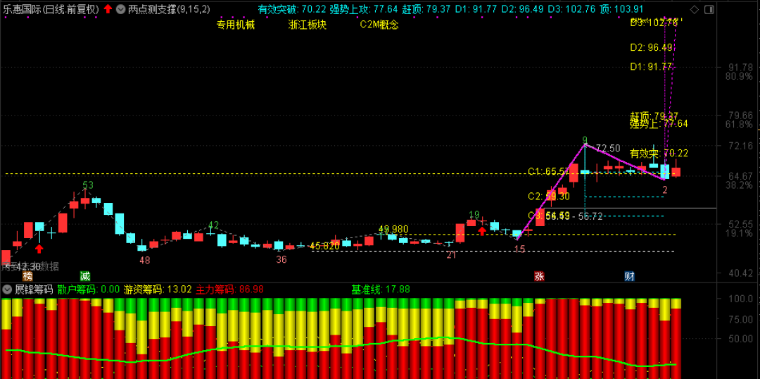 上一次做乐惠国际是在65.56元买入的,结果收获不错。65.57元是回调第1支撑,很明显已经在这个位置撑住了。上周五午后在64.46元挂单又买了一次,今天在66.66元高抛了,虽然获利才三个多点,但我觉得这样赚钱心里踏实,该股最高涨到68.80元,后面应该还有一定的机会,有兴趣的可纳入自选股做观察!