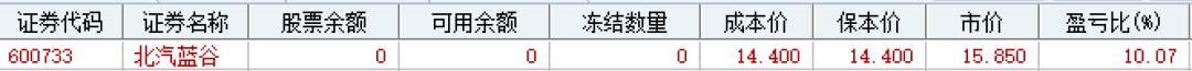 昨天14.40成本买入的北汽蓝谷,今天进行了成功的高抛获利了结。该股业绩比较差,属于资金推动类型个股,但这个市场就是这样。只要有资金推动,乌鸦都能变凤凰。接下来,应该还有继续向上冲击的机会,除非再度回头踩线,否则短期只能以观望为主。