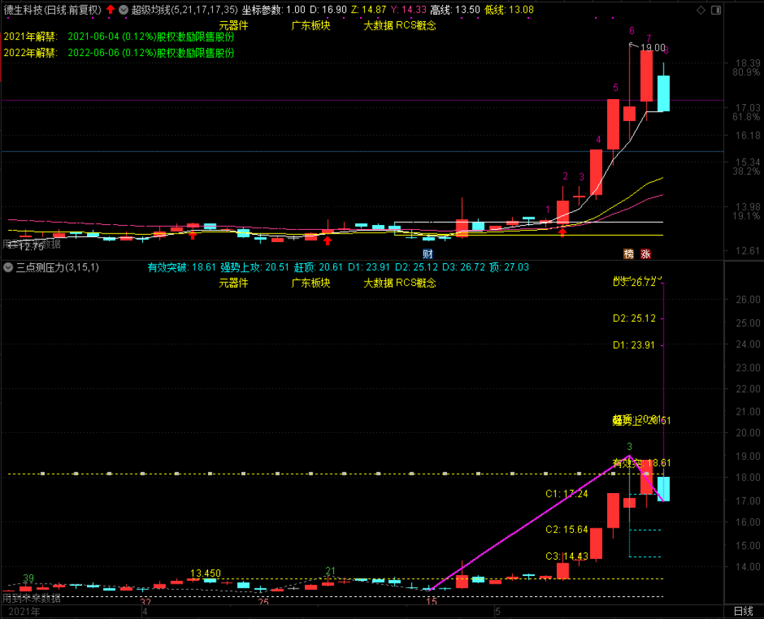 今天在17.25元买了10000股德生科技,结果14点后突然下杀跌停,我仔细的研究了一下该股的基本面,并没有发现不好的地方。于是在跌停板又加了10000股,如此一来,明天如果继续往下砸的话, C2支撑位15.64元如果能够挺住,我可能会有选择的再买20000股。当然,这只是我的个人操作行为,不要参与或模仿,以免造成不必要的损失。