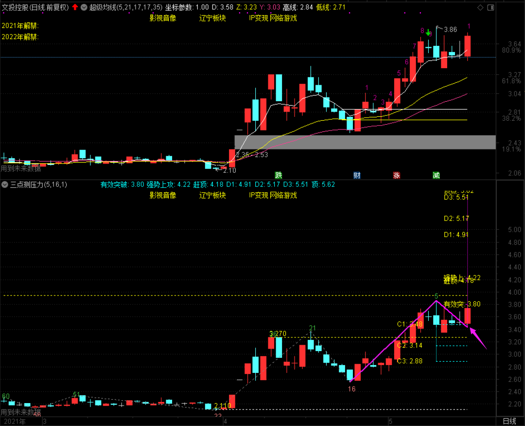 今天早盘分享的第一只红B股仍是文投控股!预警价格3.48元,盘中股价最低探至3.43元,收盘股价在3.74元。如果你是在3.48元买入的,短线获利已经高达+7.47。为什么还要买它呢?很简单,C1支撑位今天是第4天,而且非常的标准。这样的股票你不买,你还想买什么呢?就按照这个形态,自己找一波上升后的回调点位,非常有效!