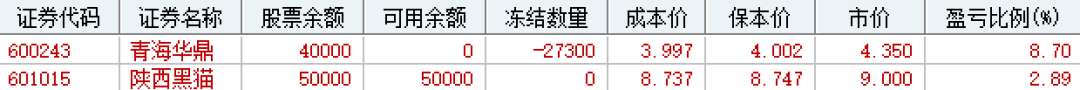 青海华鼎今天在涨停板做了27,300股的减仓,这是前面预约涨停的一只预警股,已经忍了他好几天了,可能有人纳闷,我为什么不全部抛出呢?其实这只股票价格够低,最近10个交易日也没有出现过像样的涨停,所以我想再往下看一看,前高4.74元也不算太高,主力筹码也在85以上,应该还有机会往上冲一冲!