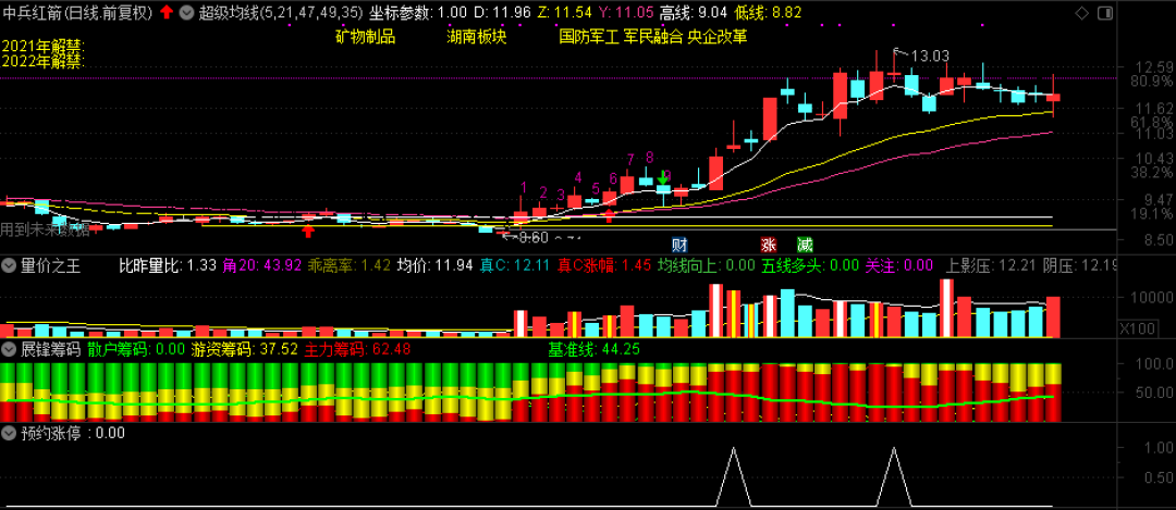 今天有人和我说,红包股中兵红箭能涨,已经完全超出了他的认知。其实,该股正好是信号后第10天,给了很多次低买高卖的机会。我是12.38元做高抛的,6毛钱的收益我觉得还是满意的,有人说还会继续上涨,有人说会涨到哪里哪里,这些都不是我关注的,因为任何一只股票,你只要买一点好,赚起钱来都是一样一样的!你细品一下~~
