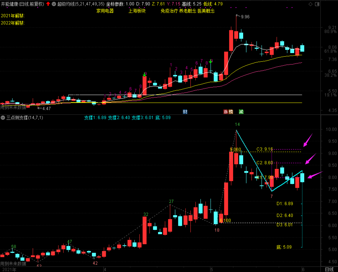 今天很多带健康的股票都大涨了,单单开能健康很不解风情。不但没有红盘报收,反而把第1个反弹压力位7.99元跌穿了。从整个股票的运行态势来,其实走成这样实属不该,对该股有什么看法呢?不妨文后留言,咱们一起讨论一下,这里不存在着什么道理之争,我更喜欢百花齐放的意见!