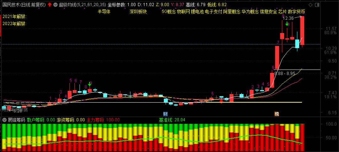 如果我现在告诉你,上周五我们预约涨停买的是国民技术,你信吗?不管你信不信,我们买的就是这只股,而且是分成两次买入,我周五鸿达兴业出局的资金,最后时刻买的也是该股,它能够涨停,我没看出来,但它的上涨是基本确定的,这个我心里比较有数。最终我们没有卖在涨停,而有的朋友卖在了涨停低0.01元,我同样恭喜你们,这种操作挺好的!