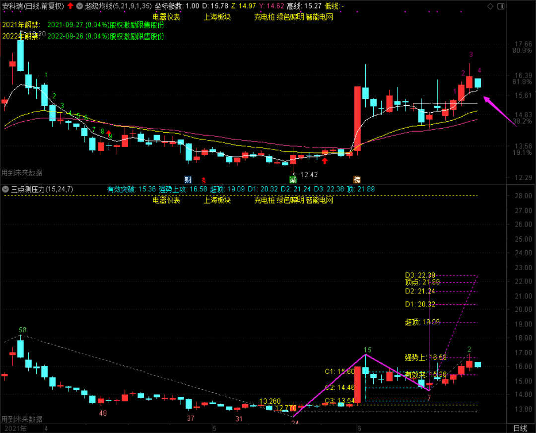 昨天我就注意到了安科瑞的异动,今天我就一直在观察。因为它开盘在16.26元,最低看到15.83元,不管今天他多么努力,就算拉起来拉的再高,出现吊颈线的命运都没有办法避免。尾盘的时候索性向下运动,收了一颗小阴线,但却很好的化解了可能出现的吊颈线,不得不说这个主力是聪明的。你对该股怎么看?欢迎文后留言,咱们一起探讨一下~~