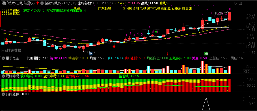 道氏技术也是这两天推送分享的红包股,6月15日预约涨停预警信号,你注意观察其后5日指数平均线的买入机会,是不是有很多次?我粗略查了一下,加上今天应该有6次,就是这么一个简简单单的选股系统,学会它有什么难度吗?寻找10天内最强的个股,这难道不是一个非常好的思路吗?世上无难事,只怕有心人!你细细的、慢慢的品吧!