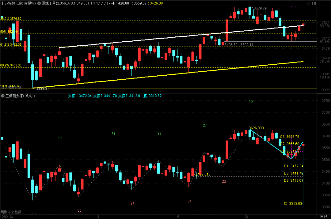 今天大盘走的和昨天讲课说的差不多,3566虽然是突破了,但指数止步于3577,让人感觉特别不好。再往下看的话,3577~3588还是一个挺大的压力,能够突破站稳自然会越来越好,否则只能是越涨越抛。大概下档有个支撑在3548,再往下就是3509~3490,这是个做加法的区域,只要不被有效击穿的话,这个区域就意味着机会的存在!