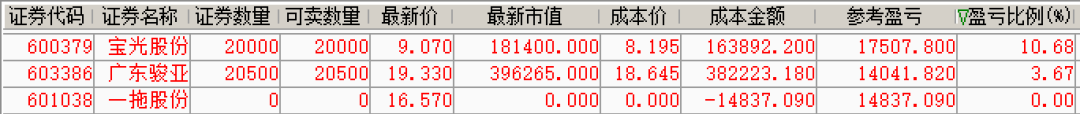 今日实盘趁上冲高抛获利了结了一拖股份,虽然盈利并不是太多,但总比亏10来个点要强。19.82元委托的广东骏亚,最高冲到19.77元,如果接下来三天不创新高的话,我会择机获利了结。宝光股份表现为也很一般,中轨在8.98元附近,这里如果回踩后再突破的话,一旦突破上轨就有可能出现加速上升,所以我拿着再看看,然后决定去留!