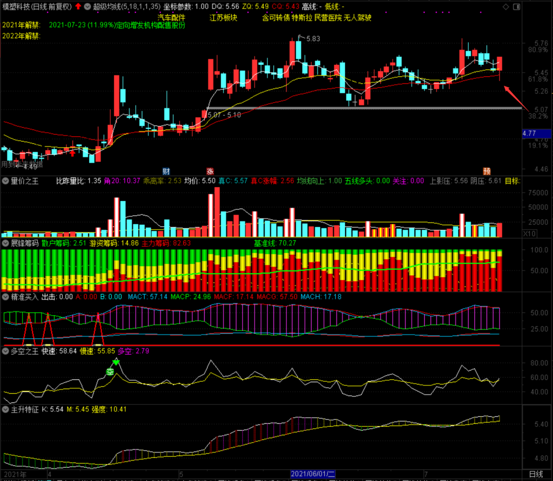 000700模塑科技今天表现较好,就在你5.90元做的买入,今天5.43元加两成仓,平均成本也就5.60左右。但很遗憾,好多人不知道该在35日指数平均线上加两成仓,也不认真听每天的讲课。今天晚上21点,我将着重讲一下35日加仓的重要性,以及35日指数平均线失守后的操作。有兴趣的,就记得过来听一下!就这!