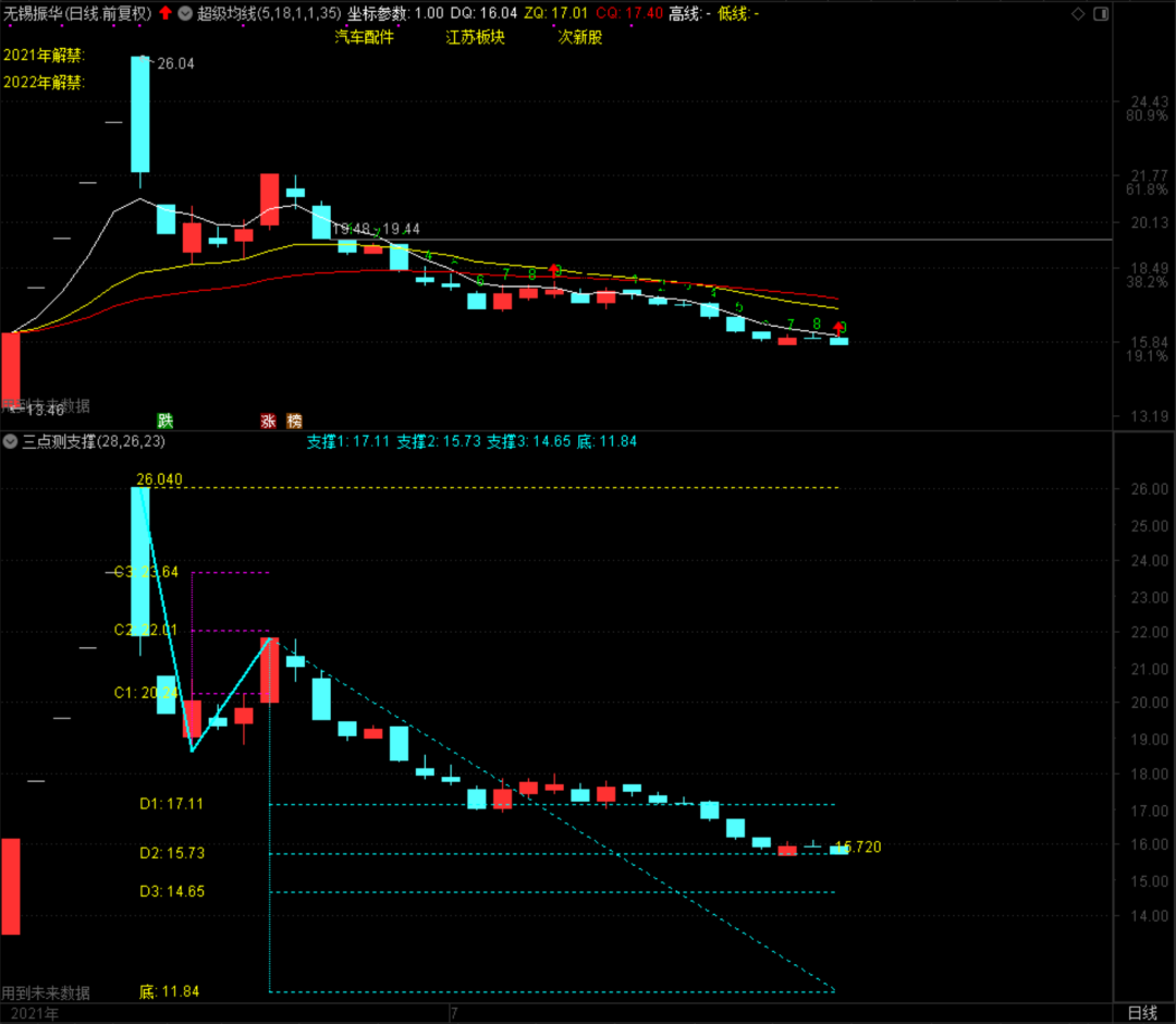 无锡振华小周期下调第9天,今天收盘特别的微妙,15.73元是第2支撑位,结果收盘在15.72元。这样一来,除非明天继续收在15.73元之上,否则15.73元这个支撑位不保。如果明天收盘在15.73元之上的话,短线算是4天收在15.73元之上,对反弹将产生积极的影响。否则,将继续向下试探14.65元支撑力度!