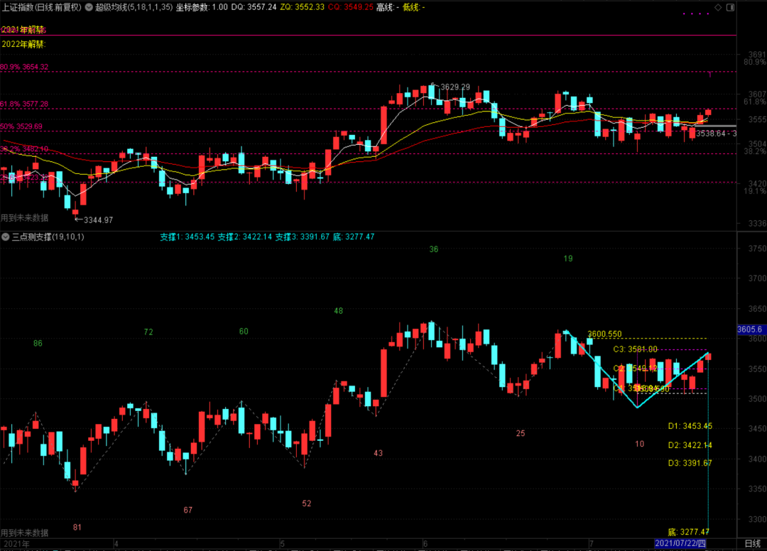 今天指数总体表现还不错,但一步一个坎儿,好容易把3566突破了,3577又挡了一下,接下来还有个3581,然后才是3629,看上去主力好像挺有耐心,其实这样的上涨,会消磨多头的意志。接下来,除了上述所说的3577和3581压力外,3629.29突破与否很重要,因为这关乎能不能在一个月之内攻上3800,所以后面要特别留意一下!