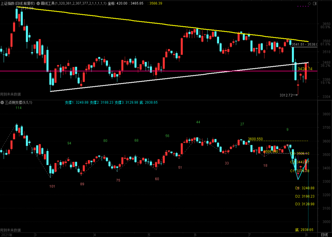 昨天大盘回抽了上升趋势线,而且是非常的标准。也正是我画了这个图,然后开始被纷纷模仿。股票继续研究这个事儿,虽然算不上什么大事儿,但我希望每一位分析者都要有自己的看法和见解,千万不要人云亦云。你能创造什么呢?除了吹牛之外?更有甚者,两根大阴线是说破3000点,现在又转过头来说要涨到多少点,你还要不要你那个大B脸?我向来都很讨厌波浪分析,厌恶一切用波浪来分析A股市场的人。而恰恰就有这么一些人,学着外国的波,数着中国的浪。吹起牛B来一套一套,说来也怪,踏踏实实做技术分析的人被追捧的不多,而这一类吹吹乎乎者却非常有市场。后面哩哩啦啦跟着一群“崇拜者”,怎么想的呢?我不知道,唉!3483.87今天没有上碰,收盘连3465.85都没有收上,明天这根上升趋势线走到3467.22,再收不上去的话,恐怕短期市场就要变脸了。讲这个不是危言耸听,因为时间周期节点指向本周五及下周二,我也不希望接下来折腾出什么不好的东西。可你也保不齐指数会往下打,去做一个小双底,所以接下来三天还是要小心一点儿,详细的今晚直播解盘再说!