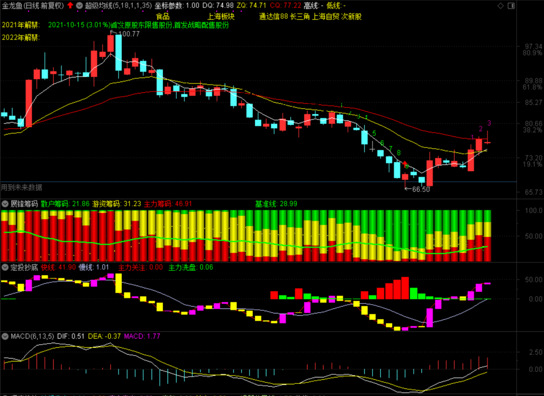 金龙鱼今天低位大幅加仓,盘中一度赚超+1.70元以上,感觉问题不是太大,但后来出现了冲高回落,让定投抄底指标险些翻黄。盘后公司公布业绩:报告期内金龙鱼营业收入1032.3亿元,同比增长18.69%。归属于上市公司股东的扣除非经常性损益的净利润39.12亿元,同比增长36.64%。基本每股收益0.55元。你看到股吧中的骂声一片了吗?一群外行人在谈一只确定性很高的股票,说实话,我感觉挺好笑的!希望跌的可以说同比下降了,业绩不达预期;希望涨的可以说美元超发导致原材料上涨。但我个人从半年报看金龙鱼的销售同比增长很多,只是受制于原材料上涨导致利润同比降低-1.24%多而已。另外,