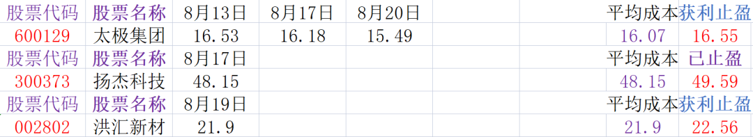 定投抄底之两路进军,600129太极集团优异的半年报,也没有得来市场丝毫的反应,15.49元收盘价再加一成仓位,短线该股已经严重超跌,期待有一个好的表现。002802洪汇新材,今天表现的还算坚挺,收盘没有用加多余仓位,今天已经收出了第2根粉柱子,虽然比较微弱,但预示短线可能有进一步反弹,获利止盈价位22.56元,看看下周会不会到。