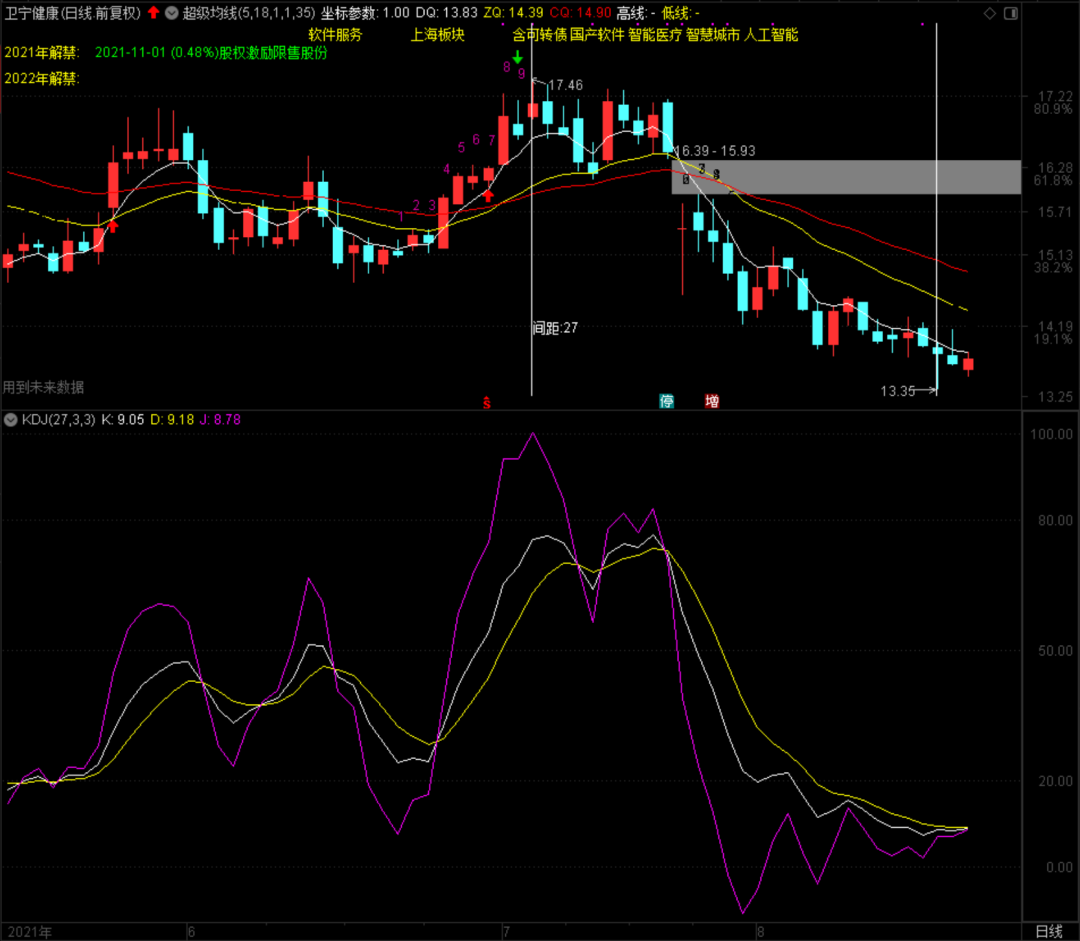 昨天13.75元补仓做T的卫宁健康,今天虽然没有什么大的涨幅,但27日KDJ还是有要进仓的迹象。这个金叉发生在20数值之下,一旦有效金叉的话,量能如果放出来,短期该股就会有一定的升幅。所以下周看反弹第一压力位14.28元,如果能够突破站稳的话,再往15.27元看。否则,14.27元附近,先逢高获利了结,你觉得这样做可以吗?