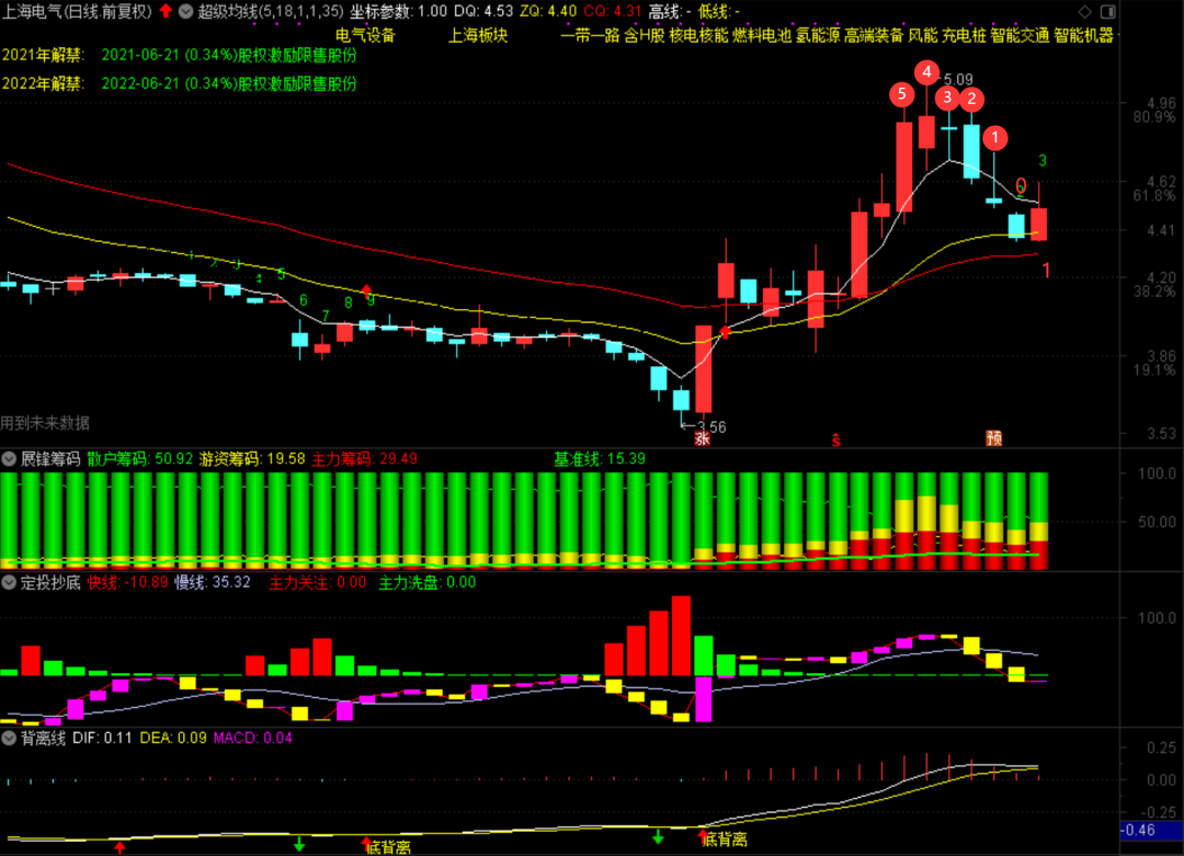 前些天在内部讲课的时候,我讲过一只个股分型的问题。今天在直播的时候,我说到了上海电气这只股票,上面分型基本情况如此,昨天说的是阴线,今天输出了一根阳线。照理说是最佳的买入时机,下周该股可能会有不错的表现,这是纯技术角度的一种分析方法,不知道你感觉怎么样?