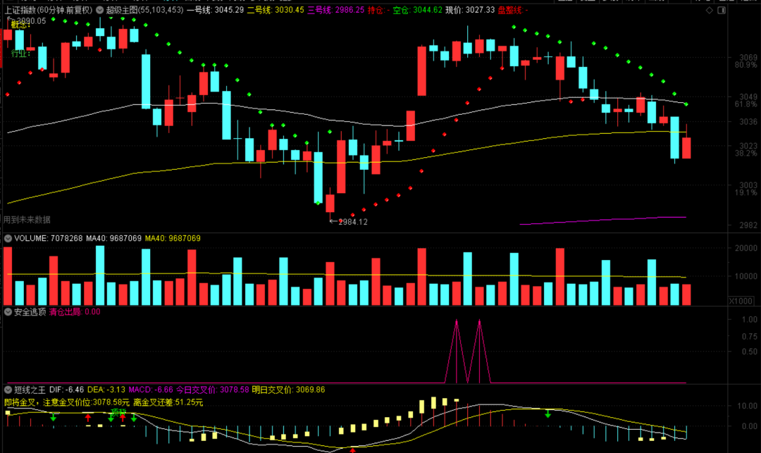 今天沪指60分钟收盘收在了多空临界点3044.62,下一个交易日第1小时能否有效修复站稳?目前看来至关重要,如果有新的变化进行侧向推动,短期大盘还是有一定机会的。否则即使有反弹出现,也将是冲高回落的走势。所以,在目前市场方向偏空的情况下,建议技术能力不强的股友,多看少动为宜!