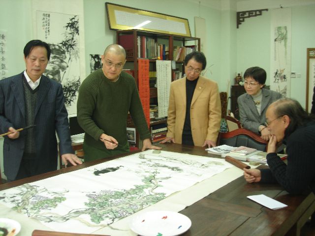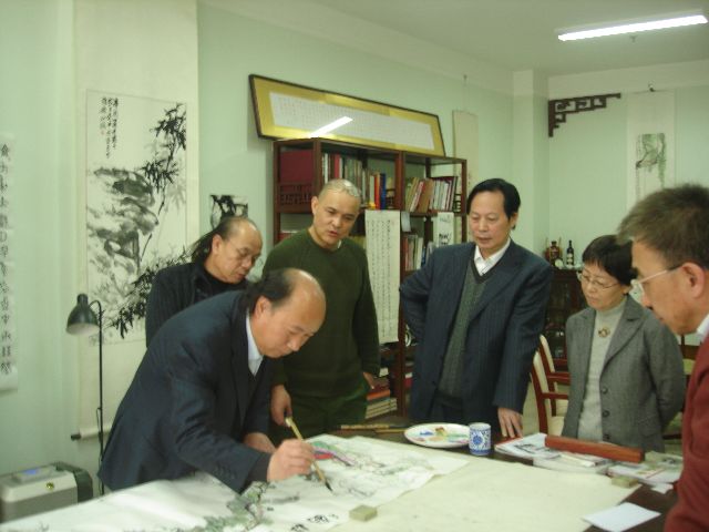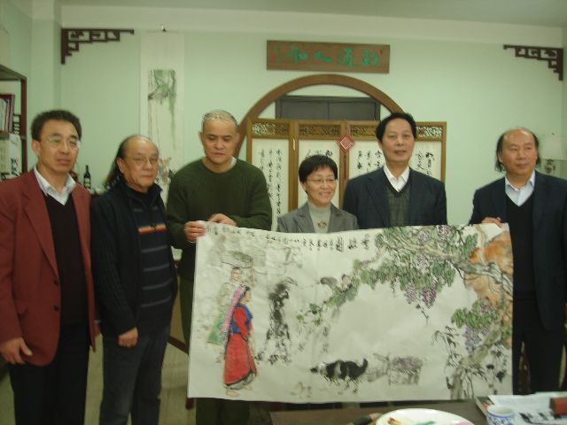 图左一为农工中央书画院副院长汪国新、左二为史国良(中国当代著名人物画家。 1956年生,释慧禅)。