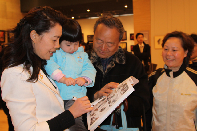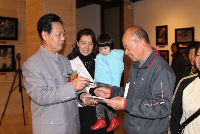 诗书画家汪国新为书画爱好者签名。