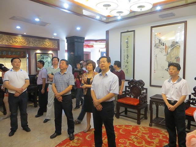 2013年6月5日星期三,湖北日报社长邹启贤在长阳土家族自治县县委常委、副县长田大甲和长阳县委常委、宣传部长、统战部长肖发喜的陪同下参观了汪国新诗书画院。