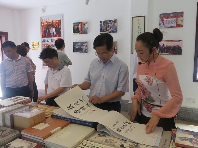 参观完国画书法,领导一行来到了桂兰书屋,翻阅着汪国新先生与夫人郑桂兰女士历年来共同创作并结集出版的作品仔细品味。