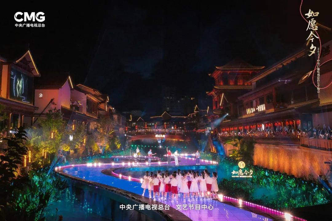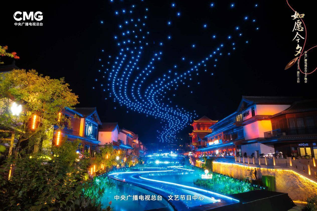 《2025年中央广播电视总台七夕晚会》融合浙江天台“山、水、城”的空间格局,采用“主线场景+特色外景”的录制模式,营造出“水上鹊桥”“星河映月”等沉浸式景观,实现现代舞台艺术与千年古城风貌的融合。《2025年中央广播电视总台七夕晚会》把科技与传统、古典与现代相融合,比如歌曲《有山有海有你》中,无人机编队随着音乐逐一点亮,营造出穿越时空的浪漫意境;短片《龙梭寻巧记》利用AI技术让古代戏本中的乞巧仕女“活”起来,让“织女授巧”的古老传说以数字形态全新呈现。