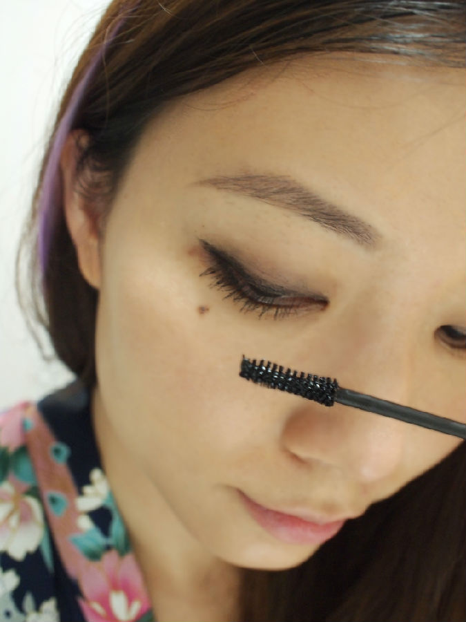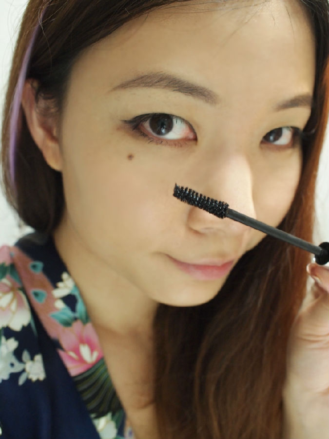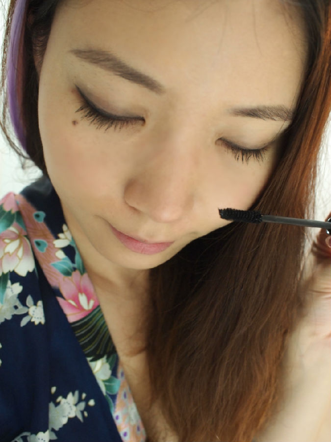 1,刷3次上睫毛,刷一次干了之后再刷一次,向上刷可以增加睫毛卷翘度。