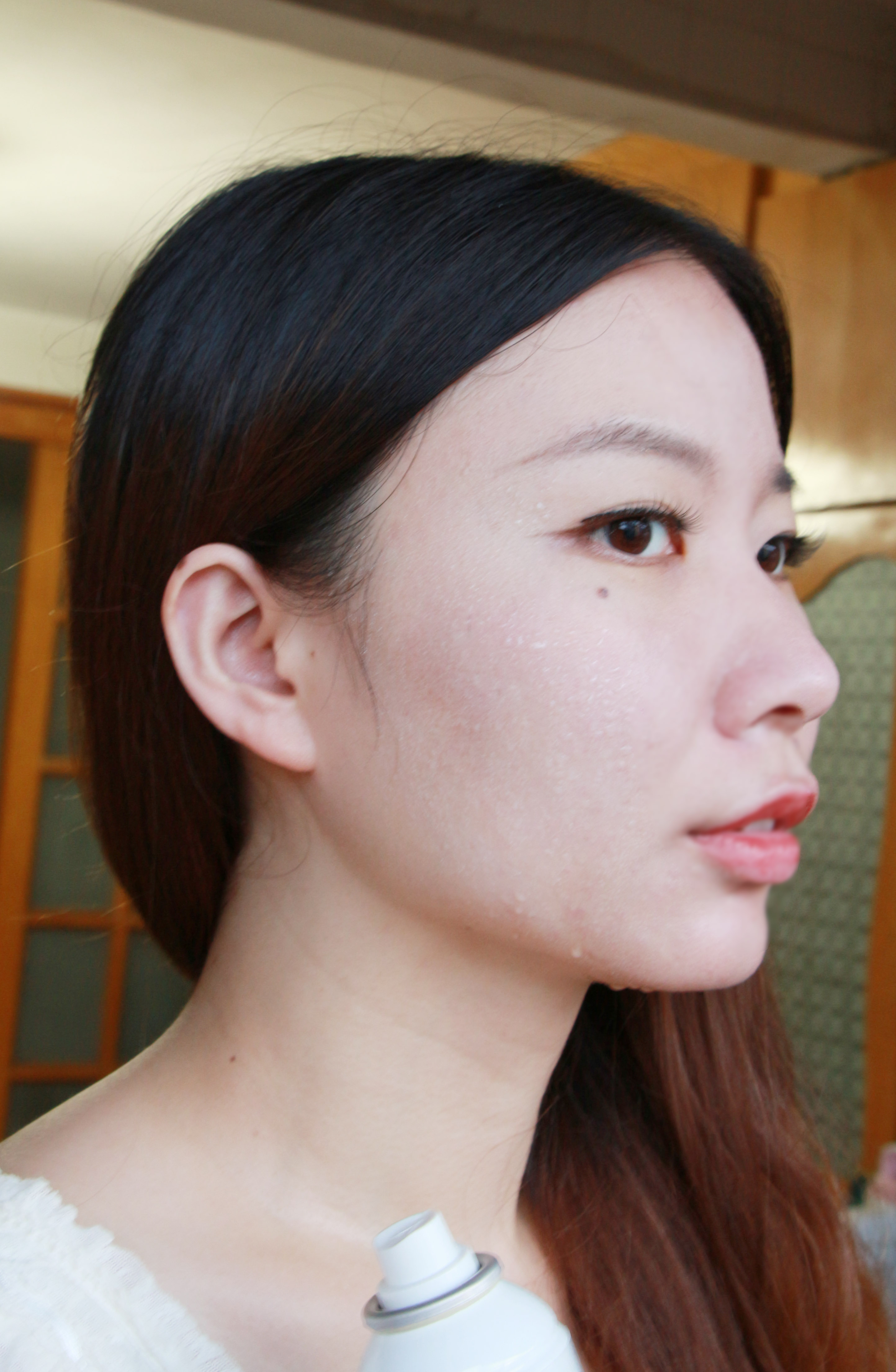 稍后整个面部都是水盈盈的,但是无需擦去,等水分自动渗入即可。