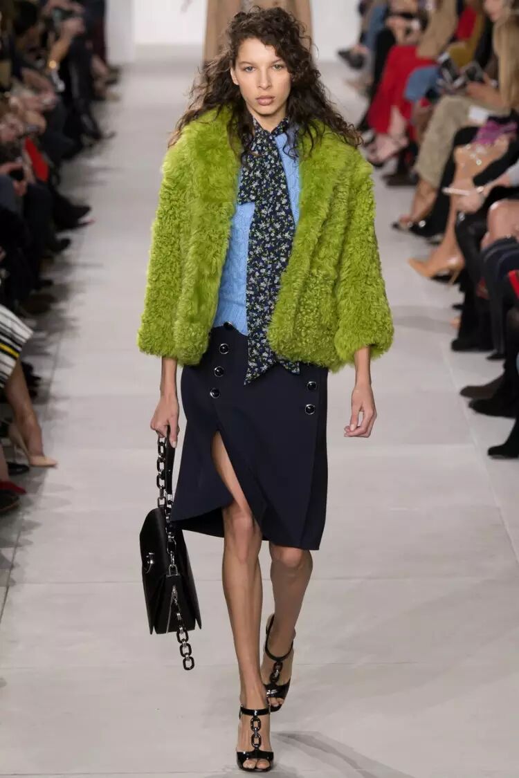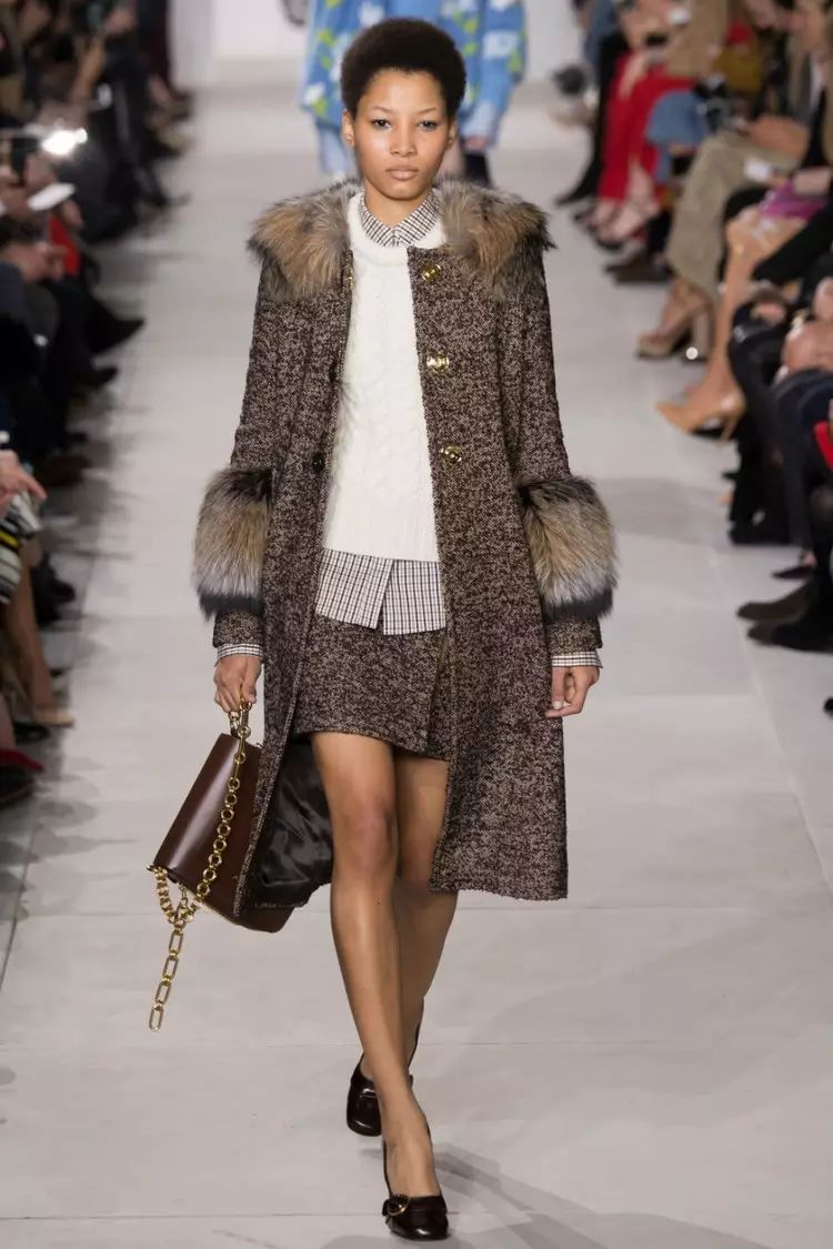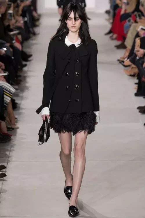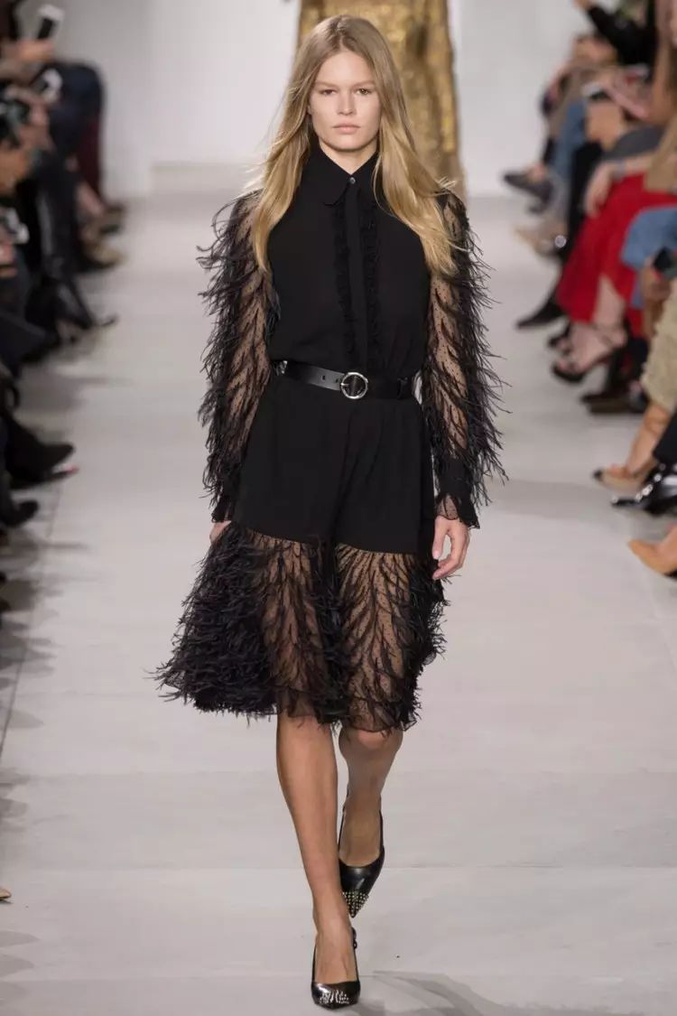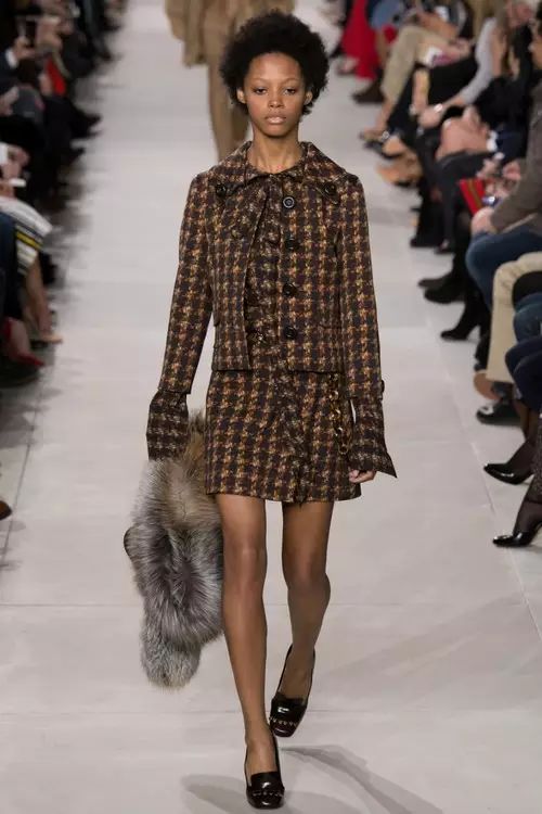 Michael Kors本季的设计,在一贯的“优雅”中掺杂着独一无二的“性感”,流苏、高开衩、羽毛等随性的元素功不可没;皮草系列仍然是Michael Kors本季的主角,无论是“OverSize”的皮草大衣,还是装饰在衣领、双袖的皮草,亦或是拿在手里、系在腰间,每一个细节都把皮草优雅高贵的特点发挥得淋漓尽致。当然,除此之外,Michael Kors还不忘给我们带来惊喜,别出心裁地加入学院风,使整个秀场如注入一股清风,给人眼前一亮的清新。