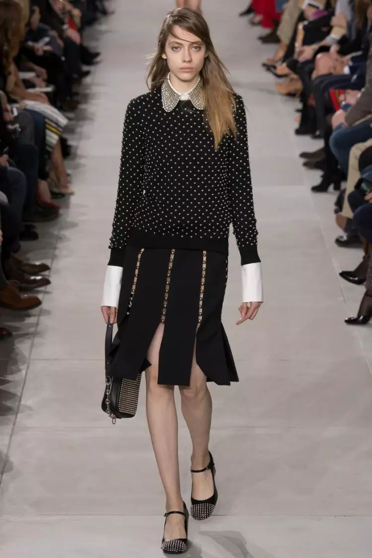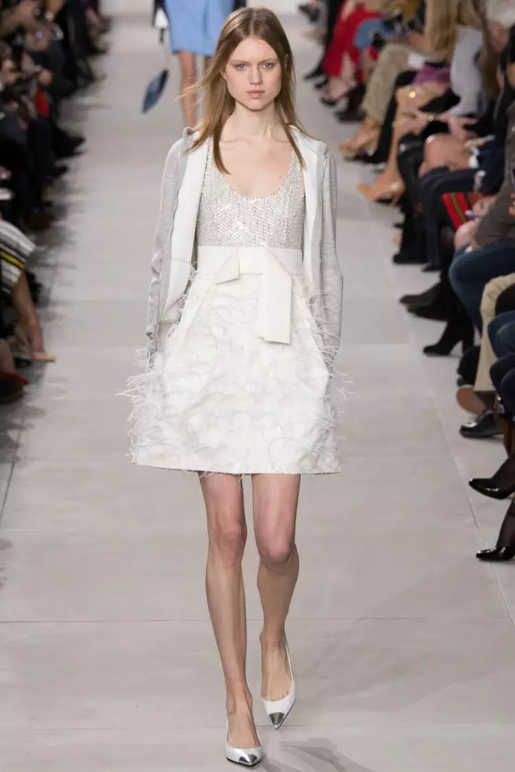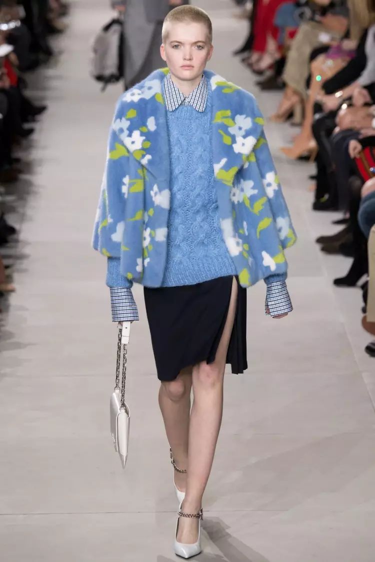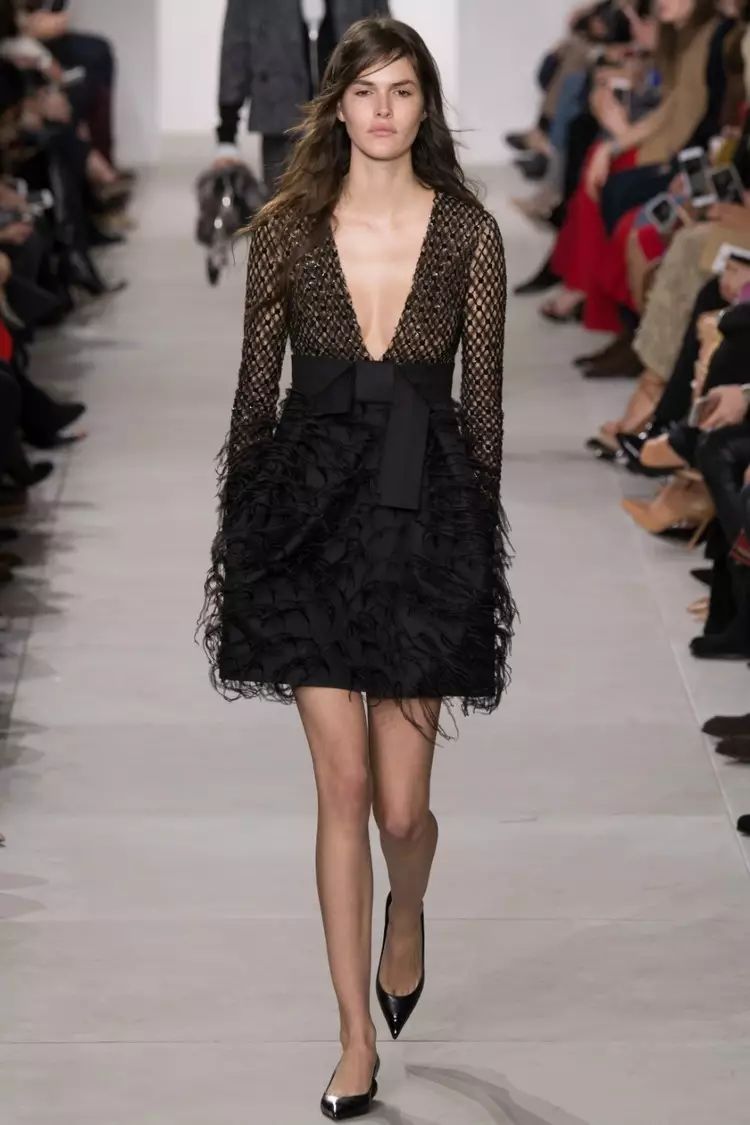 Michael Kors本季的设计,在一贯的“优雅”中掺杂着独一无二的“性感”,流苏、高开衩、羽毛等随性的元素功不可没;皮草系列仍然是Michael Kors本季的主角,无论是“OverSize”的皮草大衣,还是装饰在衣领、双袖的皮草,亦或是拿在手里、系在腰间,每一个细节都把皮草优雅高贵的特点发挥得淋漓尽致。当然,除此之外,Michael Kors还不忘给我们带来惊喜,别出心裁地加入学院风,使整个秀场如注入一股清风,给人眼前一亮的清新。