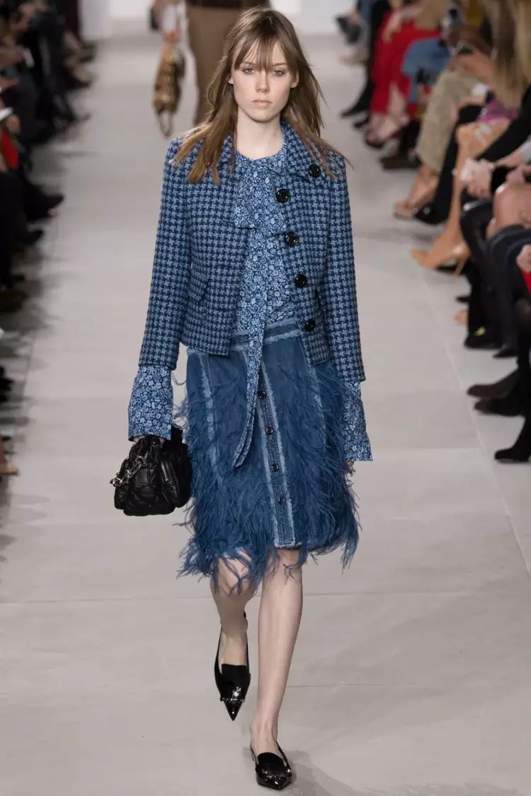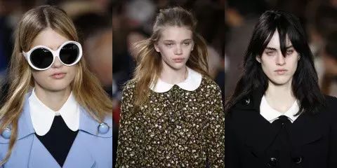 学院风可谓是这季给我们带来的惊喜,它如一股清风使整个秀场增添许多年轻的活力。设计师运用高开叉、羽毛等元素融入到学院风套装之中,使整个秀场看上去活泼有趣。