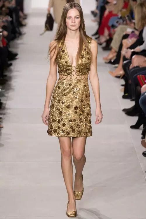 随着Cola Elixir激昂的音乐,来自来自北欧的童话之国的超模Freja Beha Erichsen在闪光灯下第一个亮相T台,Michael Kors大秀拉开了序幕。这一季Michael Kors延续以往的"Jet Set Style"。这种风格原来于身穿休闲风格的时装乘坐私人飞机游走于各大Party之间的女士们,上流社会的人们把这一现象称之为Jet Set,著名艺术摄影师Andy Warhol曾说过“上世纪60年代喷气式飞机的出现改变了纽约的派对生活,也改变了上流社会的穿着风格。”如今Jet Set Style是指一种奢华的休闲风格,就是你一身舒适又精致的装束,从一下飞机就能面对相机镜头,而在飞行期间也不受拘束,又能保持风度。