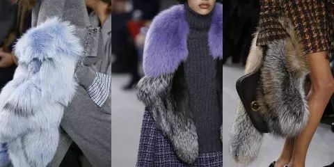 皮草配件点缀于领口、袖口,或者拿在手上,让整体衣着更有生机。