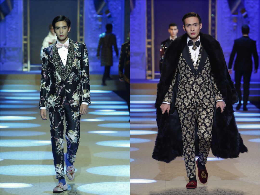 Dolce & Gabbana还是一如既往的宫廷复古,还是一如既往的请艺人走秀,宋威龙、张彬彬、纪凌尘、金大川在米兰临时组了个Dolce & Gabbana秀场F4。